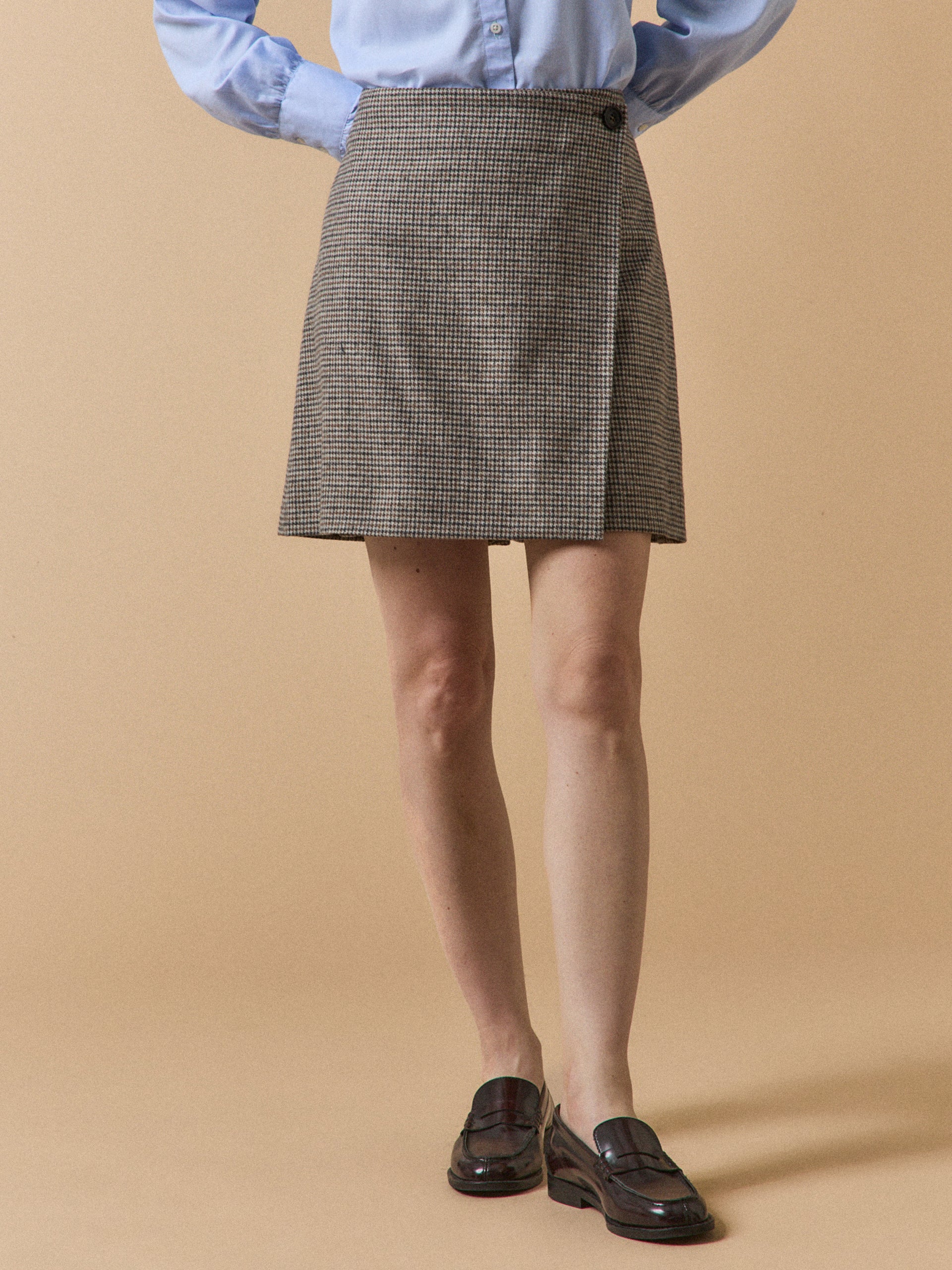 Accessoiriser votre jupe à carreaux peut transformer votre tenue en ajoutant des détails subtils mais impactants. Optez pour une ceinture fine en cuir pour souligner la taille et ajouter une touche de sophistication. Des bijoux délicats comme des boucles d'oreilles pendantes ou un collier minimaliste peuvent également compléter votre look avec élégance. En ce qui concerne les sacs à main, un modèle structuré en cuir ou un sac besace en daim peuvent rehausser votre style.