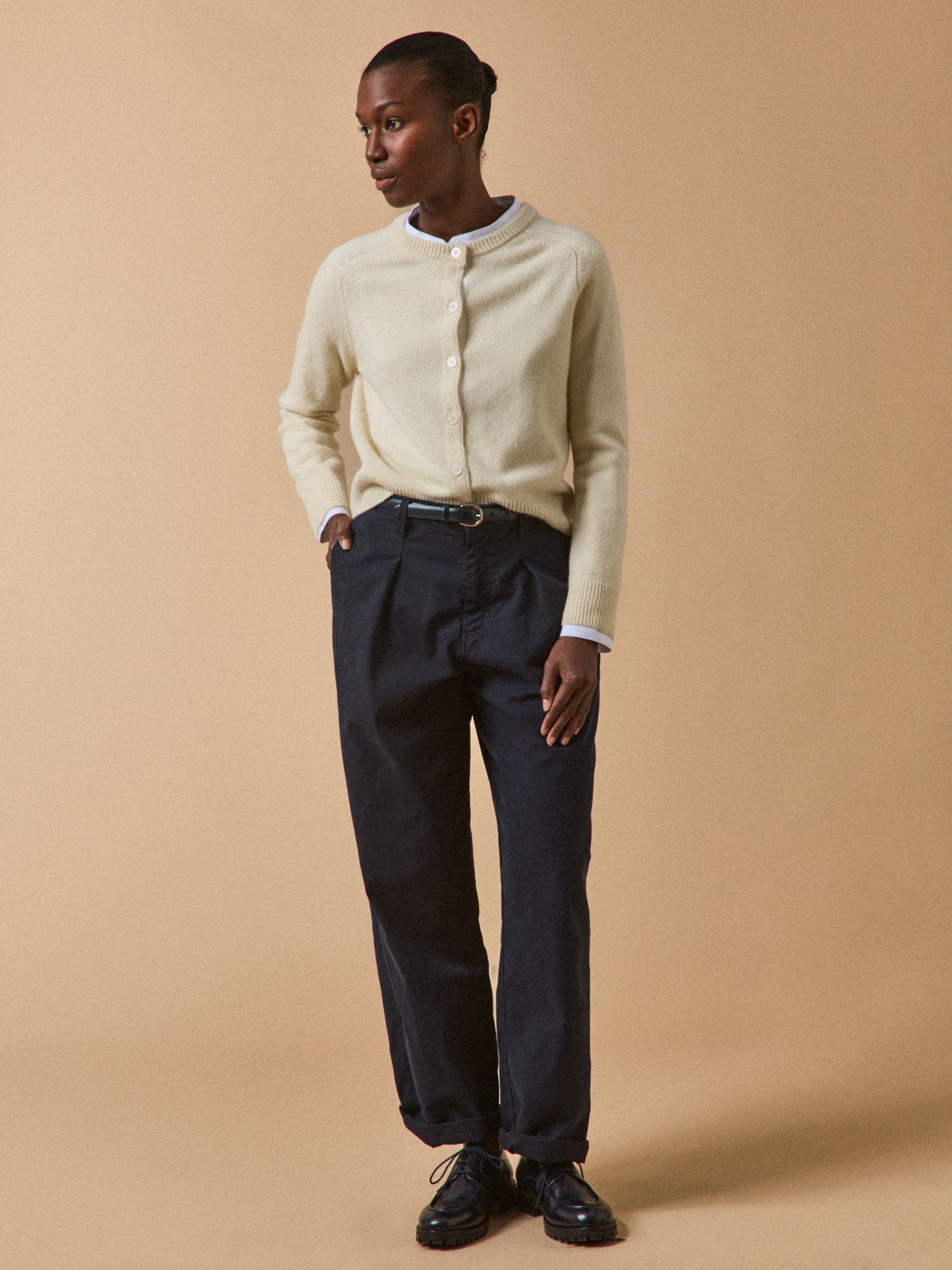 Tricoté en laine mérinos certifiée RWS*, il s'anime d'emmanchures marteau et de détails ajourés sur les épaules. Un gilet naturellement chaleureux pour accompagner toutes les silhouettes, qu'elles soient urbaines ou décontractées.