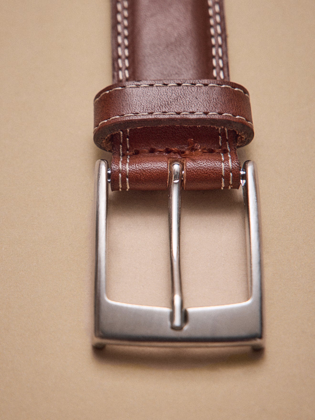 Indispensable accessoire, la ceinture en cuir donne le ton et finalise le look. Simple et efficace, celle-ci est parfaite avec son coloris sobre, ses détails surpiqués contrastés et sa boucle coloris argenté. Fabrication Belgique.