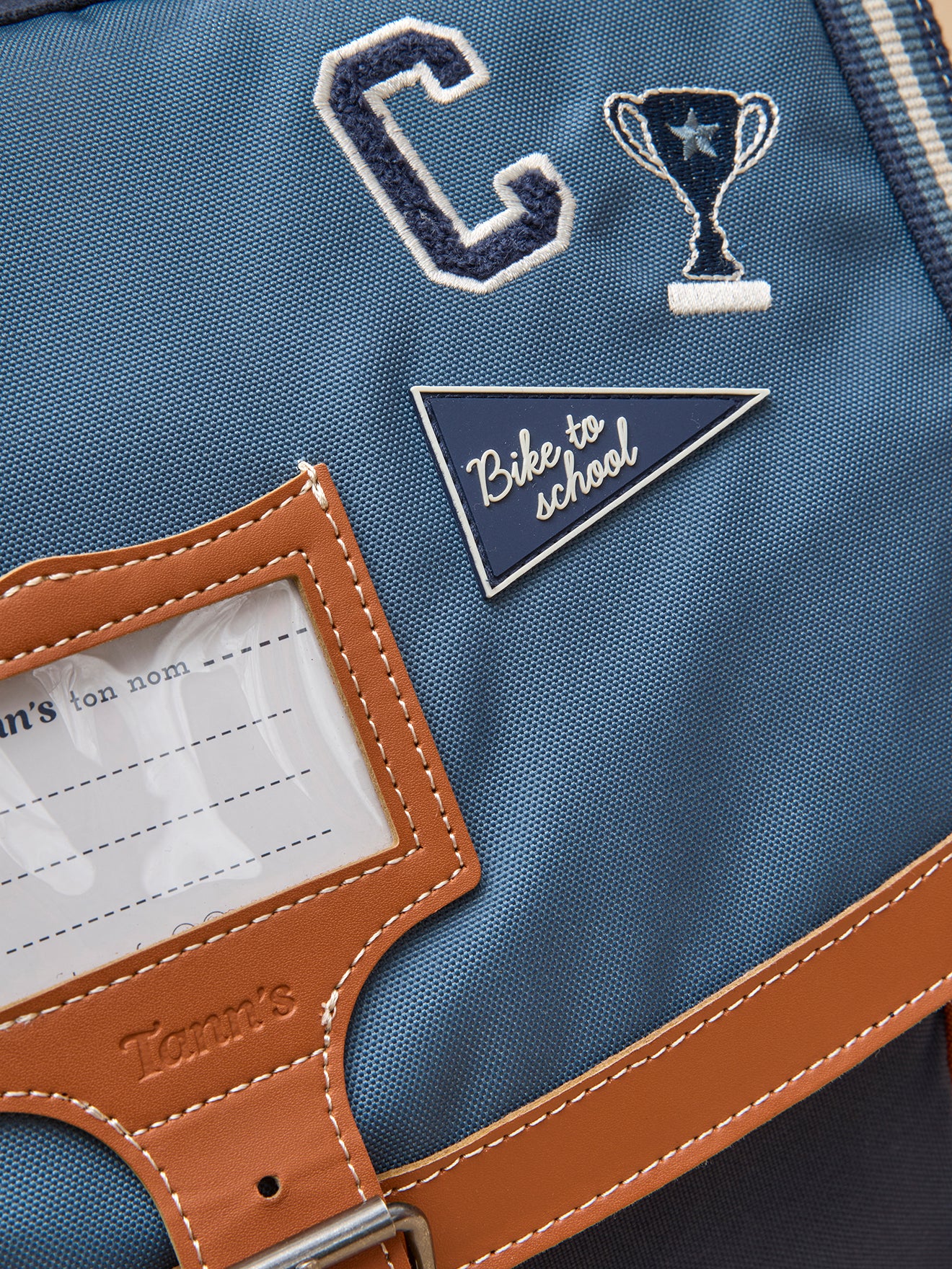 Le cartable Clément arbore plusieurs patchs dont le "C" de Cyrillus en bouclette. Un style dynamique et sportif dans un esprit vintage. Pour parfaire ce modèle, un porte-clé en forme de vélo accessoirise ce cartable iconique qui traverse les générations.