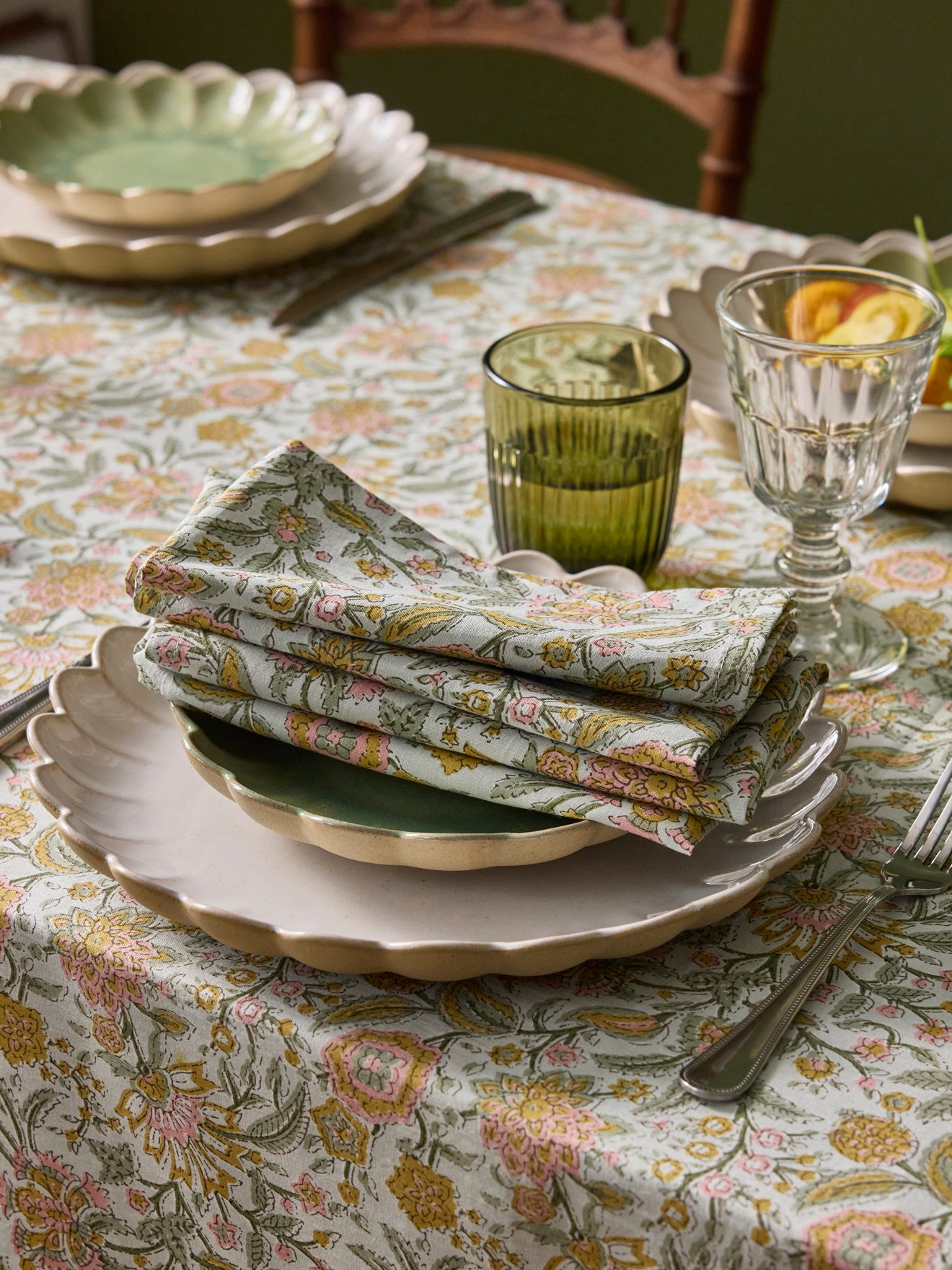 Serviette de table esprit jouy en coton tramé par lot de 4