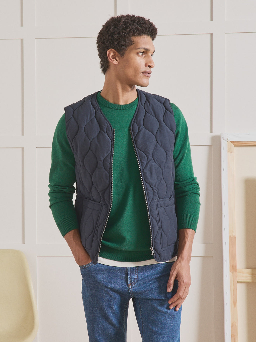 Il se porte sur un pull avec un jean ou un chino, et même sous une parka. Intemporel et facile à vivre au quotidien, le blouson matelassé sans manches se joue en superposition pour moderniser un look, finaliser une silhouette et réchauffer l'allure. Revisité dans une matière plus mate et plus moderne, il se démarque avec un matelassage fantaisie qui lui confère un style unique.