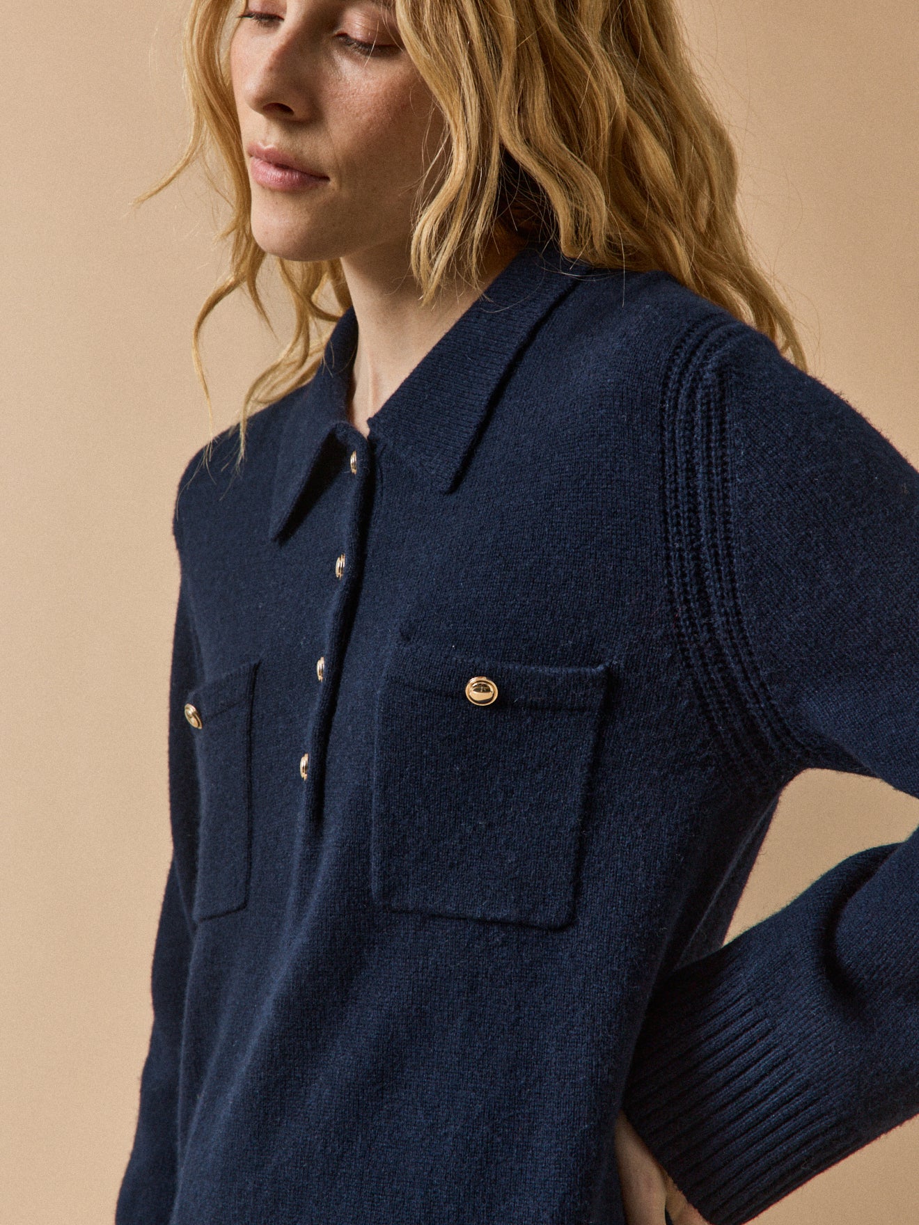 Avec son col polo et ses boutons dorés, la robe-pull s'offre un look urbain toujours chic. Mais beaucoup plus cool.