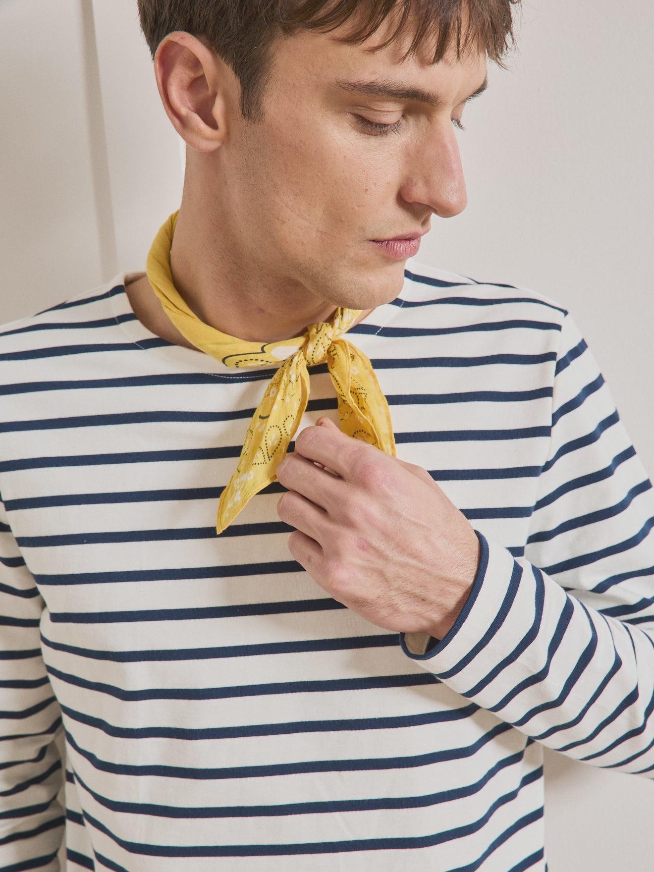 Un col rond dégagé, un volume généreux, une matière épaisse en coton biologique certifié. Confectionnée au Portugal, l'indispensable marinière en version T-shirt conserve son style authentique avec plus de tenue, plus de résistance.